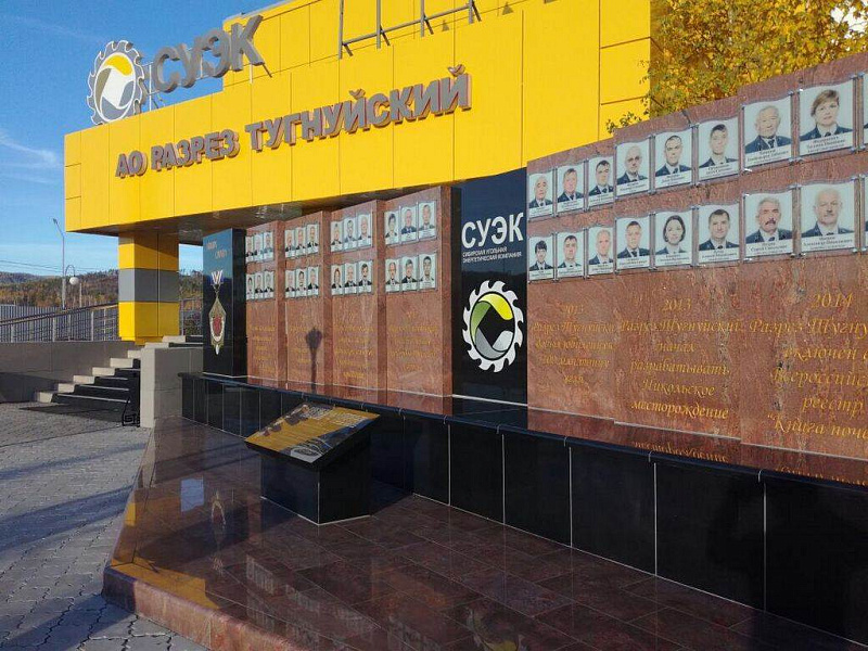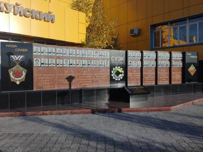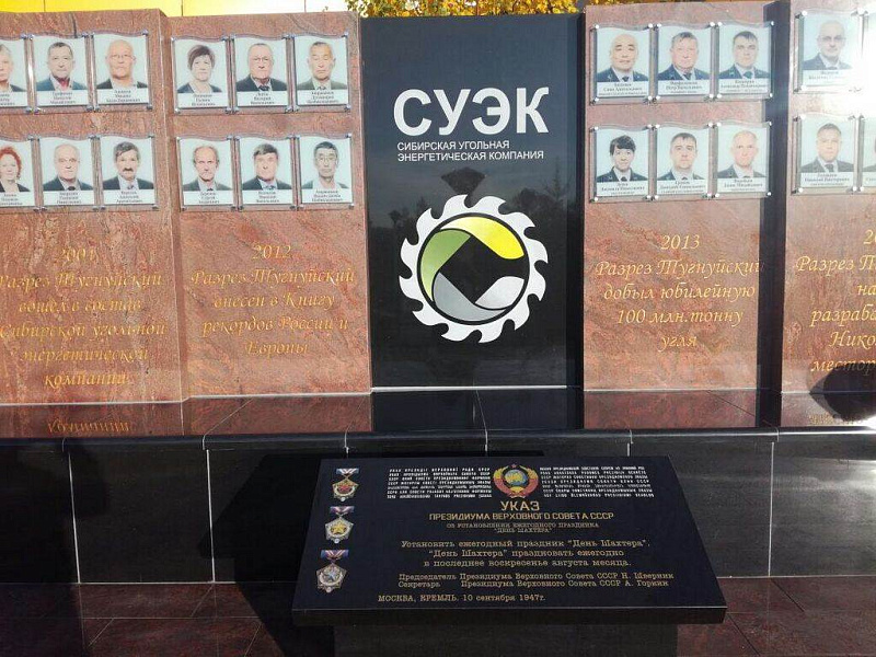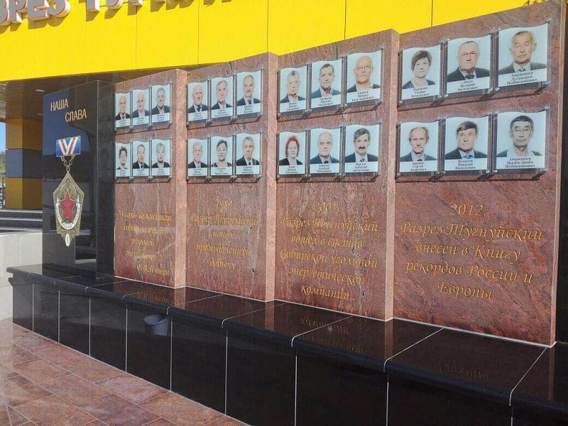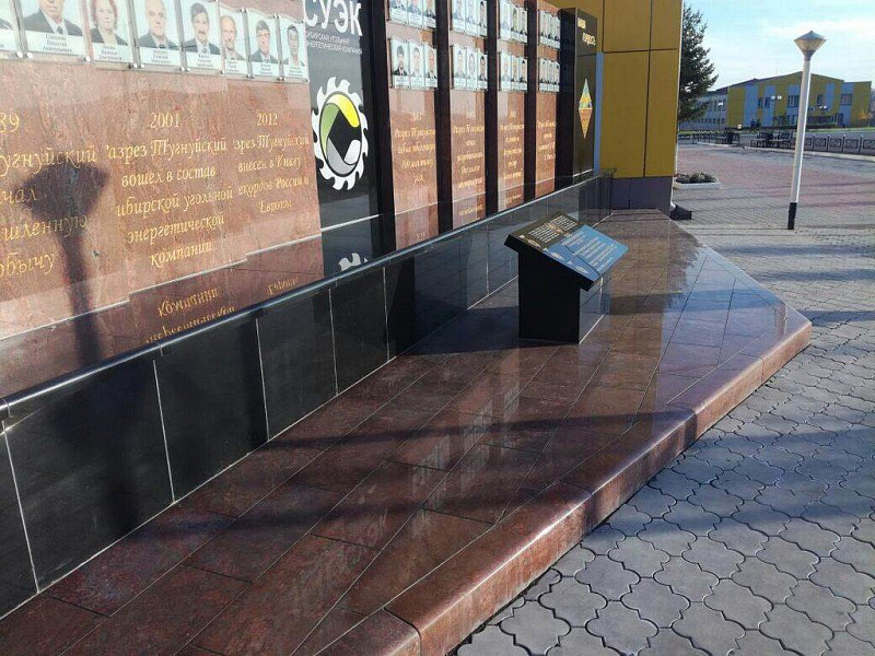 "Доска Почета" рядом с управлением угольного разреза "Тугнуйский" в поселке Саган-Нур, РБ. Изготовление, поставка и монтаж конструкций из гранита.