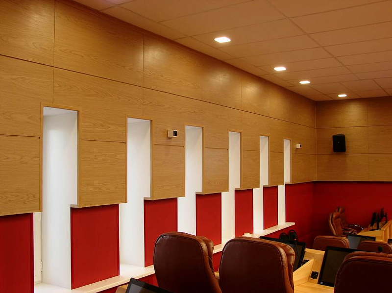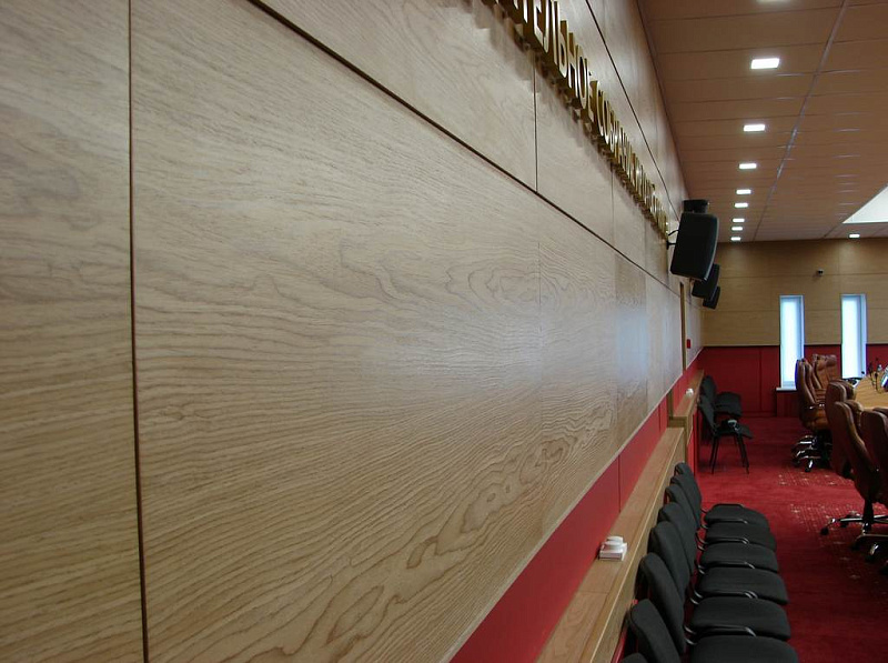 Поставка: шпонированные стеновые панели Uniproc, ковровые покрытия, потолочные системы, керамогранит.